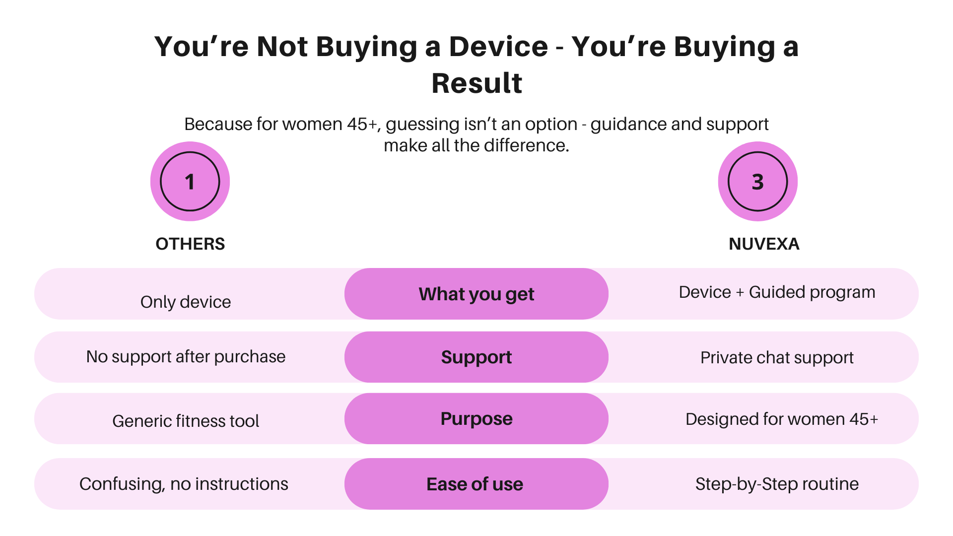 After 3 kids I felt weaker and less confident. Nuvexa made it easy just 10 minutes a day and I feel supported again. I wish I found this sooner.